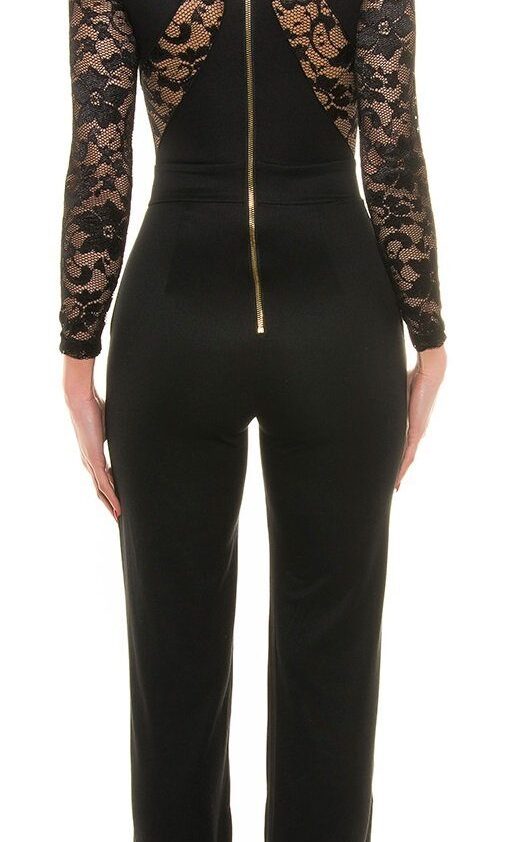 Overall long-sleeved jumpsuit with lace, evening wear business office pantsuit