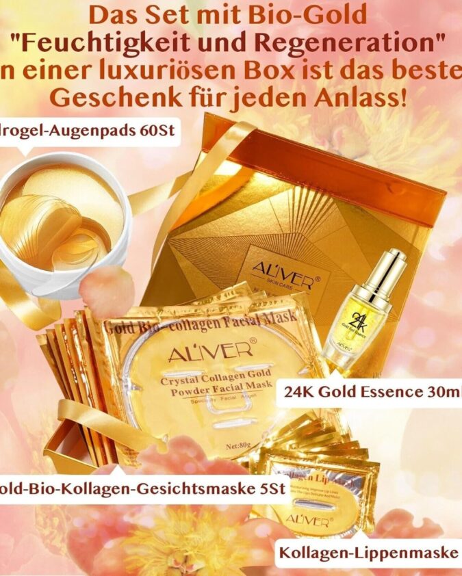 Facial Care Set Crystal Gold Face Mask Eye Pads Essence Serum Lip Mask 24K