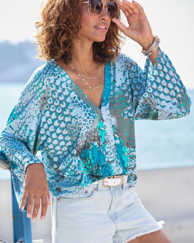- Relaxed fit: casual, airy cut in knee-length, loose – feminine emphasis on the waist and cut sleeves with slightly extended shoulder