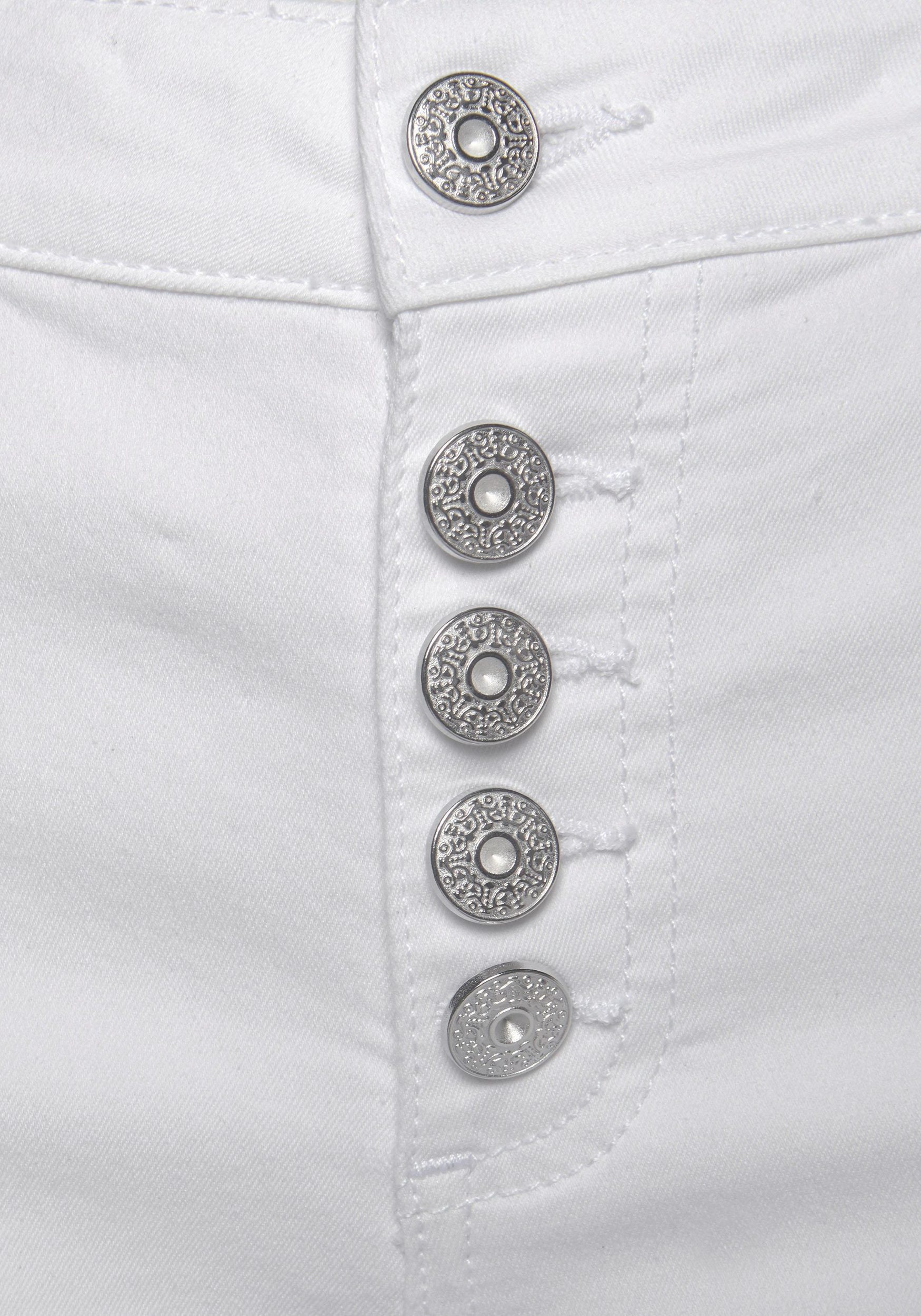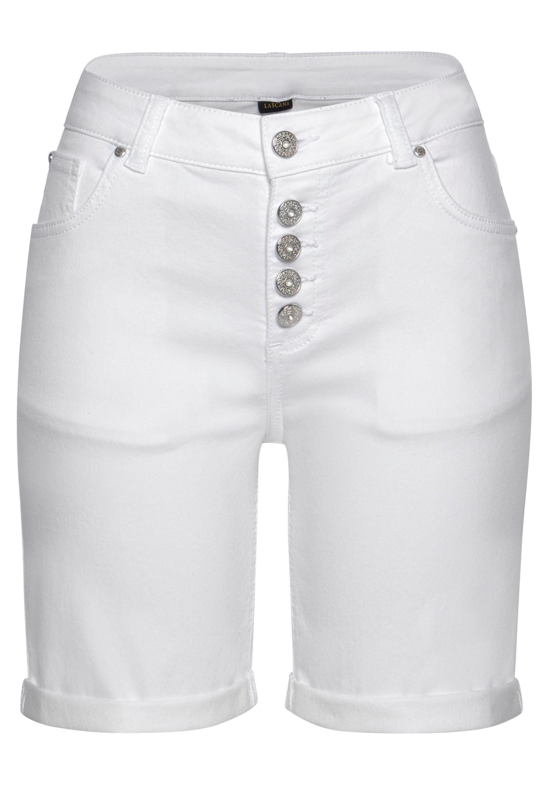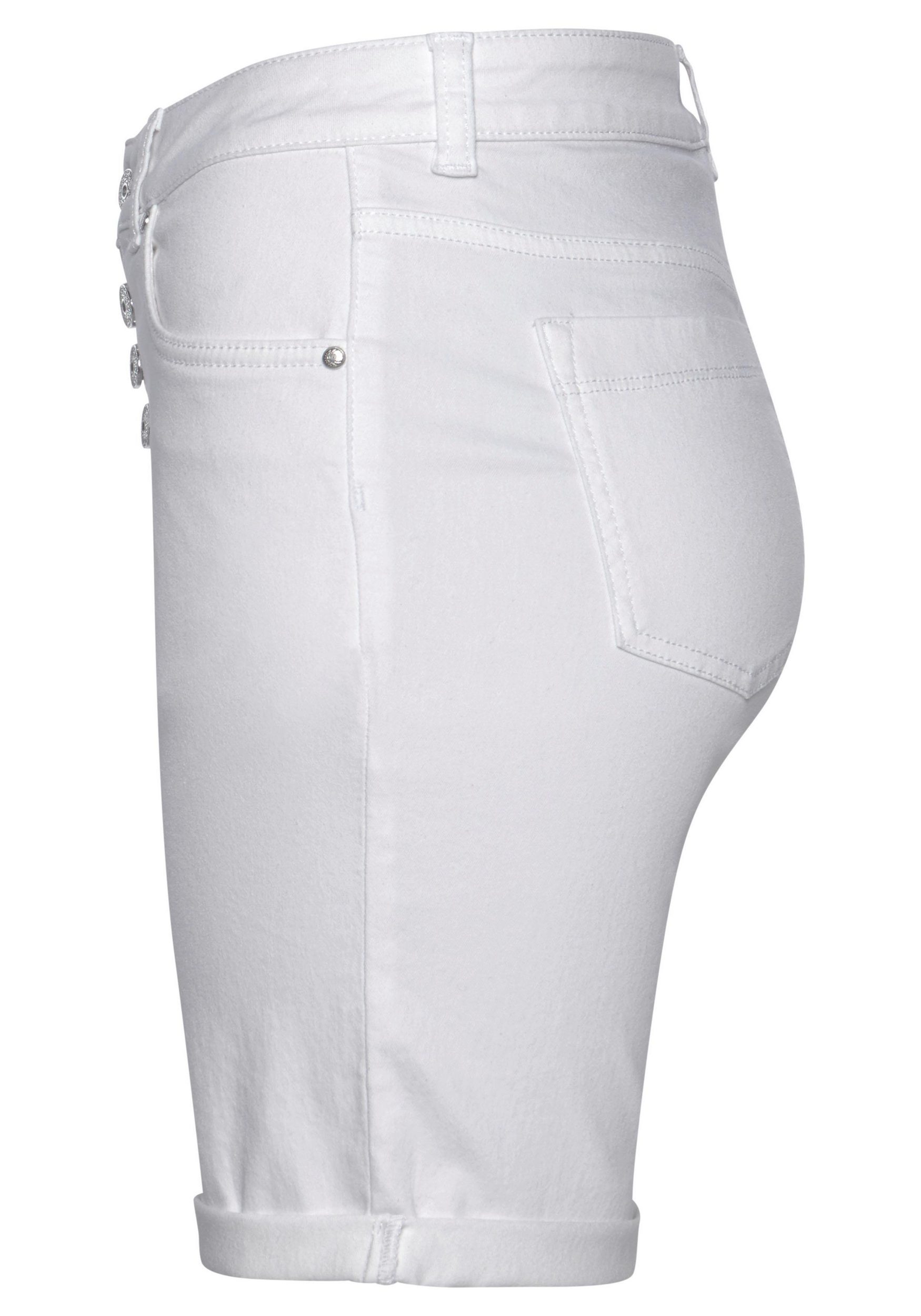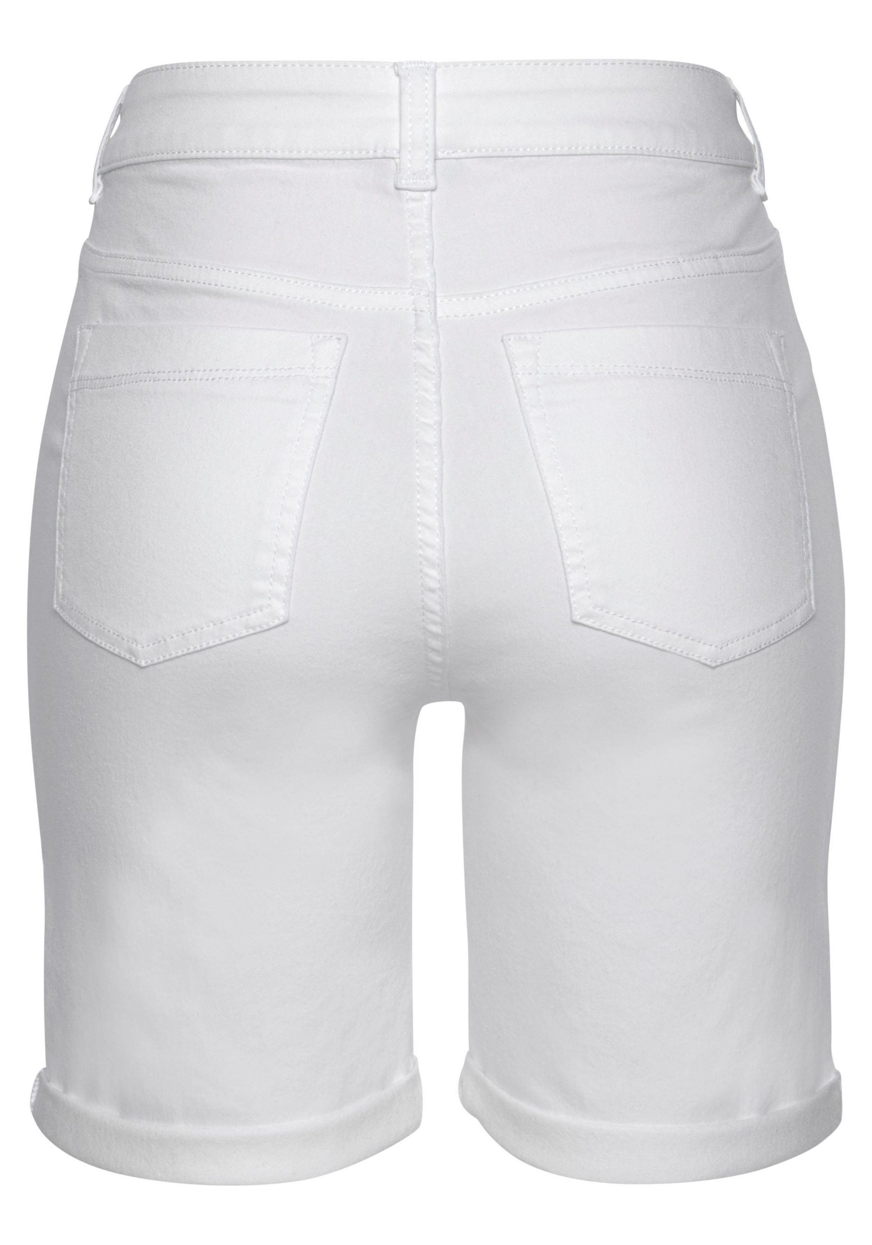 When sweaters are getting pushed further and further back in your closet, it’s time for T-shirts and shorts again. And that’s when these Bermuda shorts from Lascana come in handy. The design of these shorts is as simple as it is comfortable, featuring a casual cut with a turned-up hem, two front pockets, and practical back pockets. The soft stretch cotton also captures the comfort factor. The button placket at the front decoratively rounds off the uncomplicated design. Slip them on and head out into the sun – with the Bermuda shorts from Lascana.