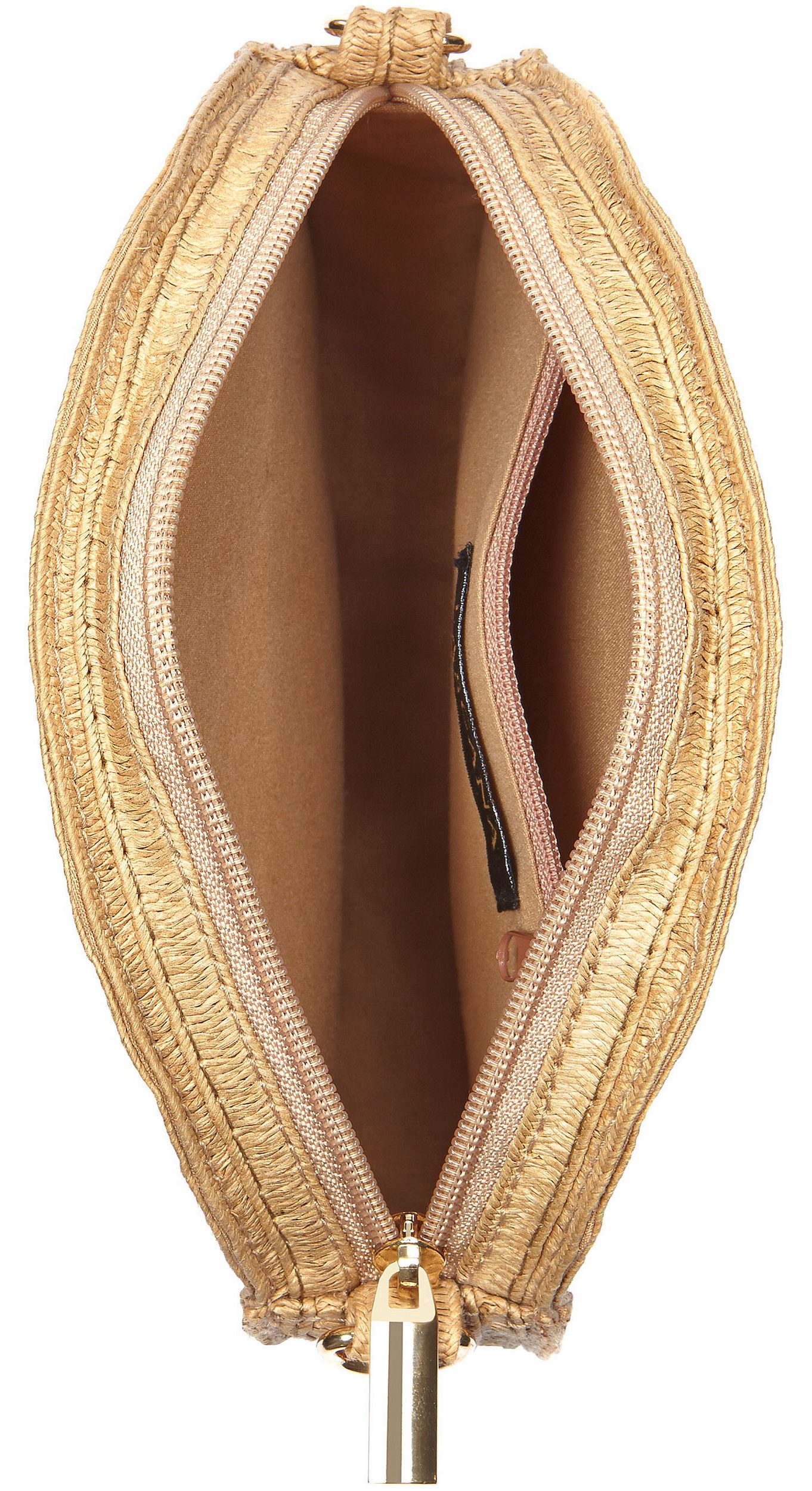 This raffia-effect bag from LASCANA, made of paper straw and featuring fashionable metal handles, is sure to catch the eye. The combination creates an unsurpassably exciting look and will be a highlight when strolling along the beach promenade or heading back to town for dinner after a relaxing day at the beach. The round bag can be comfortably carried over the shoulder thanks to the detachable chain handle. And if you pair it with a colorful maxi dress and raffia wedges, you’ll become a trendsetter at your vacation destination. More than just an accessory: the bag from LASCANA.