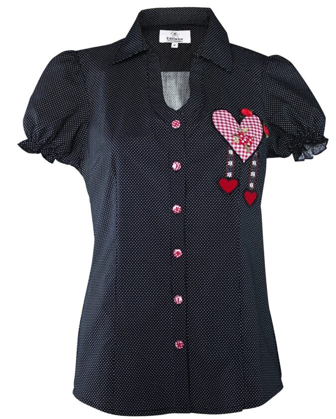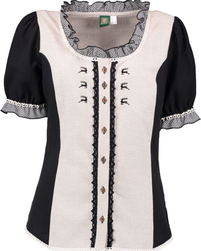Traditional blouse Shine-Blouse with round neck, ruffles and puff sleeves